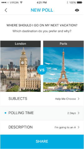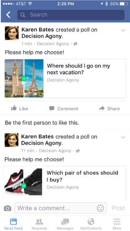 You then share it on Facebook as a quick poll and let your friends vote on the option they prefer.